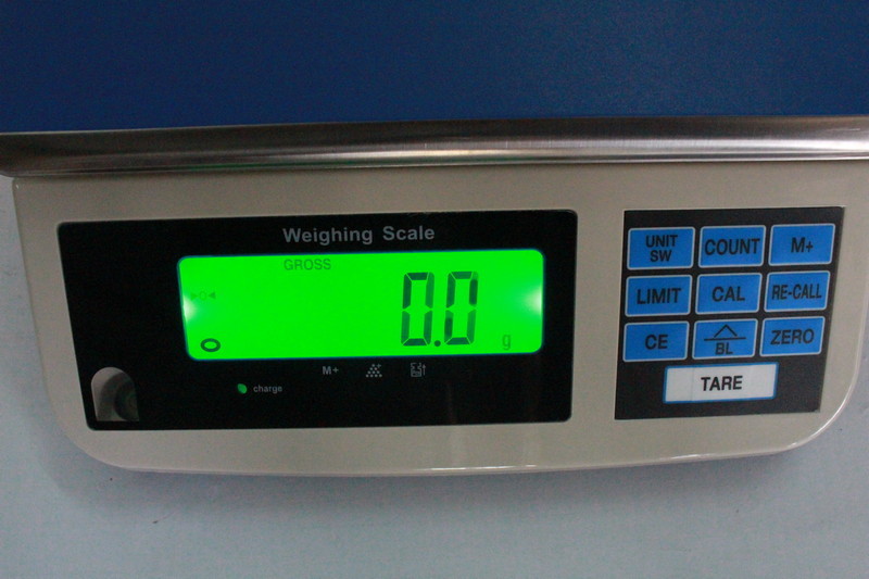 - Màn hình hiển thị bằng trục đứng, phím chuyển đổi đơn vị kg/lb/Pcs/g